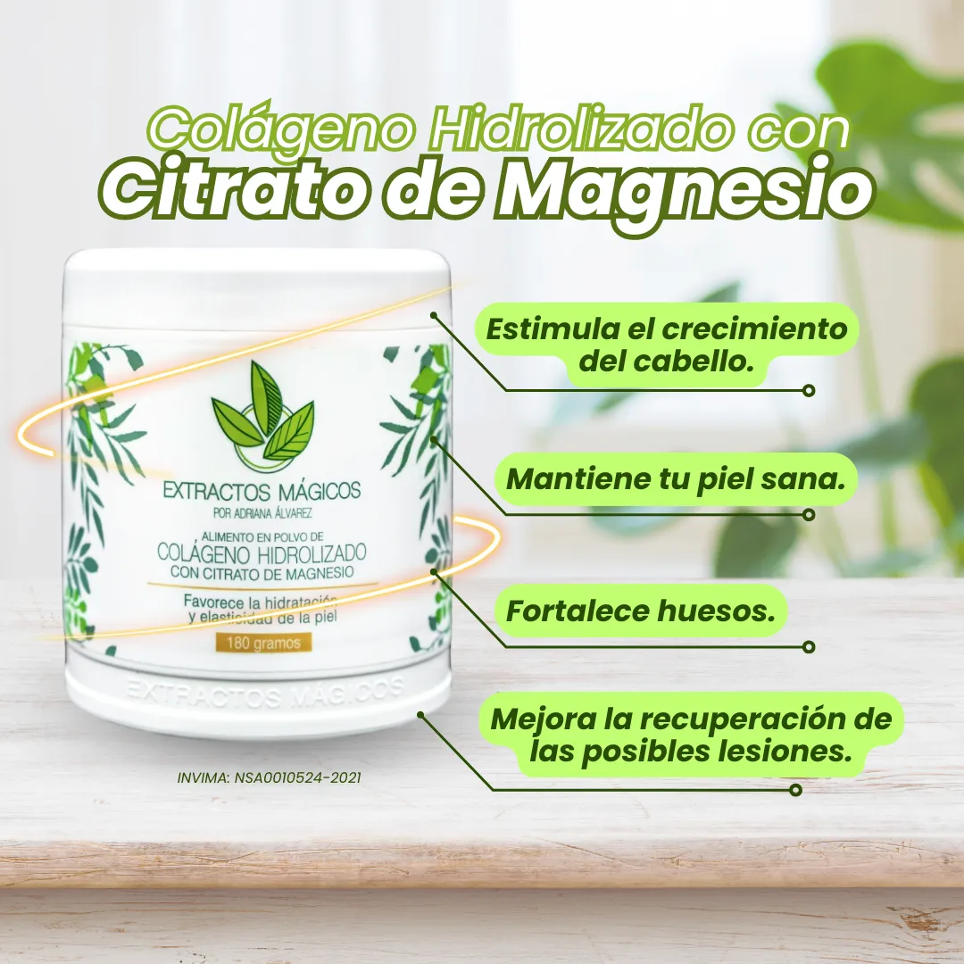 "¿Sufres de molestias articulares o fatiga constante? Nuestro suplemento combina colágeno hidrolizado con citrato de magnesio para fortalecer tus articulaciones, reducir el cansancio y revitalizar tu día a día."