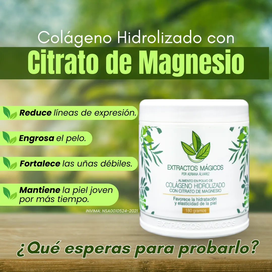 "¿Sufres de molestias articulares o fatiga constante? Nuestro suplemento combina colágeno hidrolizado con citrato de magnesio para fortalecer tus articulaciones, reducir el cansancio y revitalizar tu día a día."